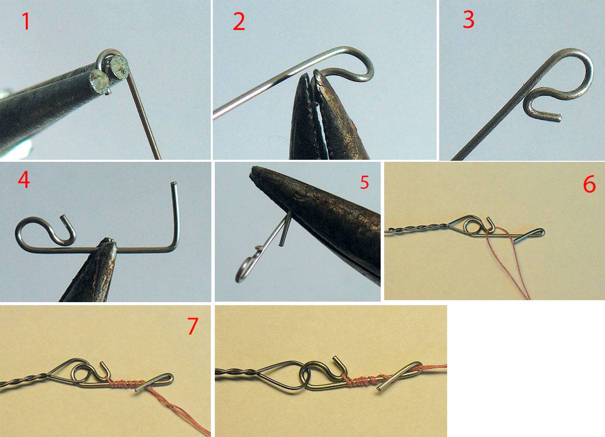 Несколько слов о выборе материала для самостоятельного изготовления: проволоку желательно выбирать нержавеющую, диаметром не более 0.5 мм. Очень тонкую не рекомендуется использовать, так как под нагрузкой она может «разрезать» плетеную леску. С другой стороны, в полевых условиях особенно выбирать не приходится – подойдет и обычная канцелярская скрепка.