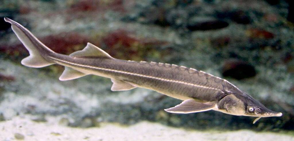 Нос хищницы немного загнут вверх. Это отличительная особенность стерляди от прочих осетровых