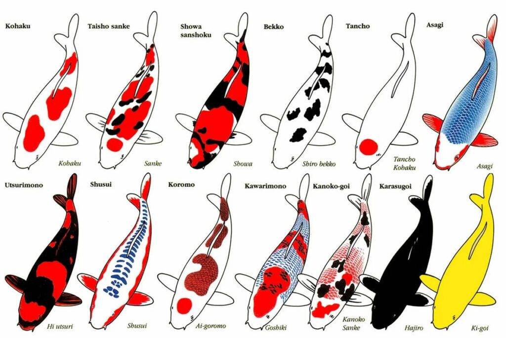 Существует несколько видов с различными окрасами. В Японии они нашли отображение не только в декоре (кои используется для украшения прудов), но и в искусстве, символике, даже стали народной традицией.
