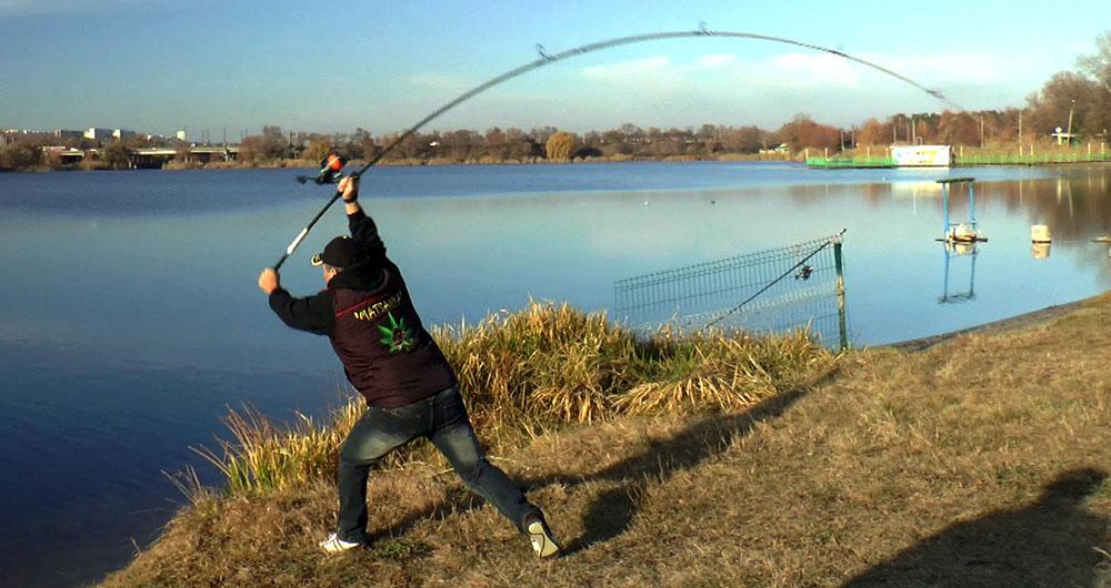 Техника заброса. Ну и, конечно, дальность заброса будет зависеть от того, как вы его исполняете. Чтобы приманка полетела далеко, необходимо сделать мощный и хлёсткий бросок. Замах не должен останавливаться в задней точке. Всё должно происходить без остановок — отводите удилище за спину и тут же посылаете приманку вперёд, словно маятником. Используйте гибкость удилища, чтобы послать приманку дальше.