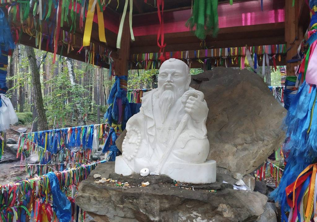 Местные верят, что это место заряжает силой и здесь живут духи. Рядом со скалой находятся молитвенные столбы Сэргэ — с бурятского «коновязь», — которые символизируют древо жизни. К Сэргэ подвязывают специальные платки «хадаки» или «хий морины».