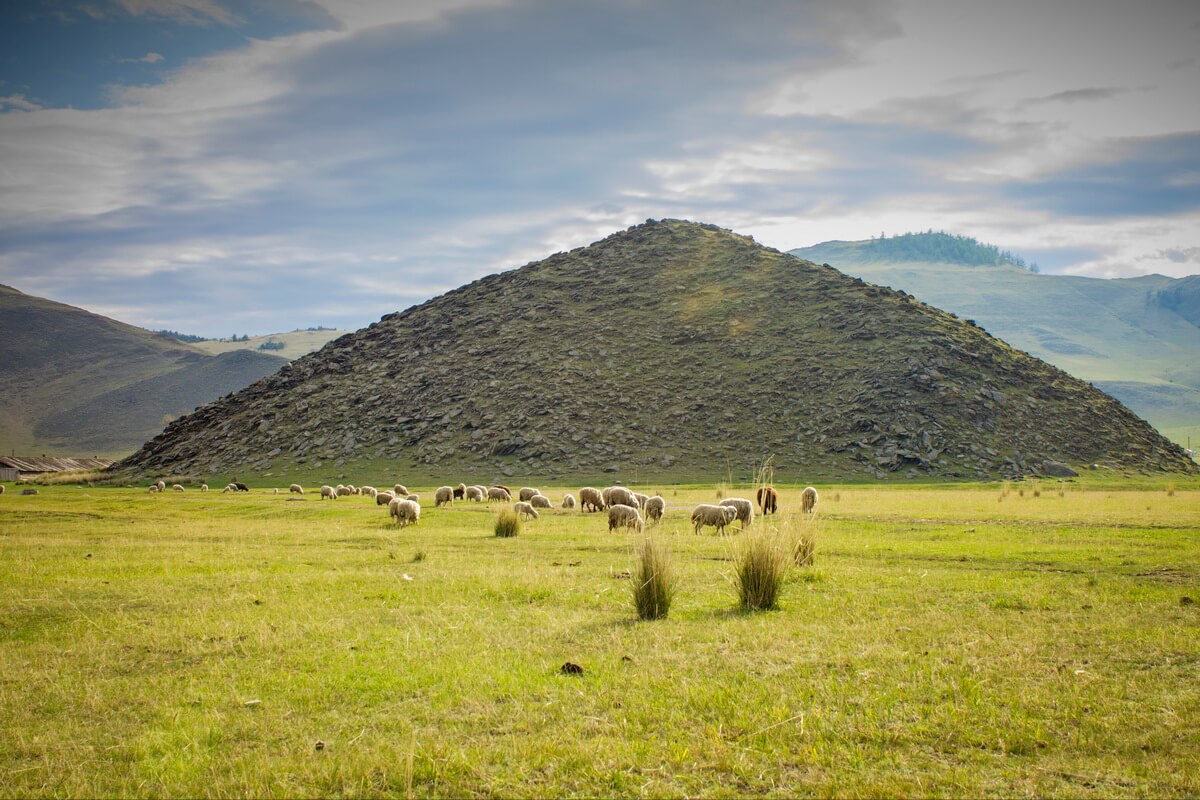 На берегу реки Анги в Тажеранских степях возвышается 42-метровый курган — интересная достопримечательность Байкала. К нему можно попасть на автотранспорте, если свернуть в районе поселка Еланцы. Очертания кургана имеют удивительно правильную геометрическую форму, хотя никаких следов деятельности человека в создании кургана не обнаружено.