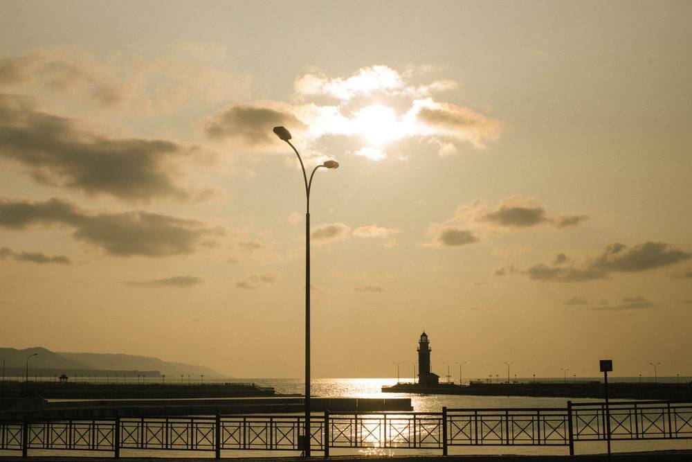 Большая часть дороги заасфальтирована, но последние 50—100 км ближе к заливу — гравийка. По пути можно остановиться в Гремячинске, где находится особая экономическая зона. Честно говоря, не знаю, чего в ней экономически особого, но сюда вложили много денег, чтобы построить маяк и набережную.