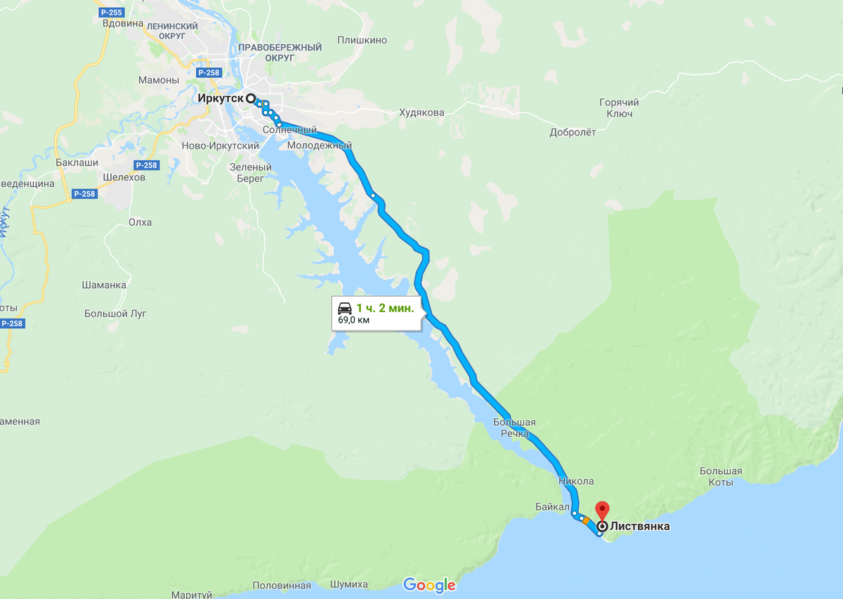 Маршрут из Иркутска до Баргузинского залива: ехать приблизительно 650 км, или 10 часов