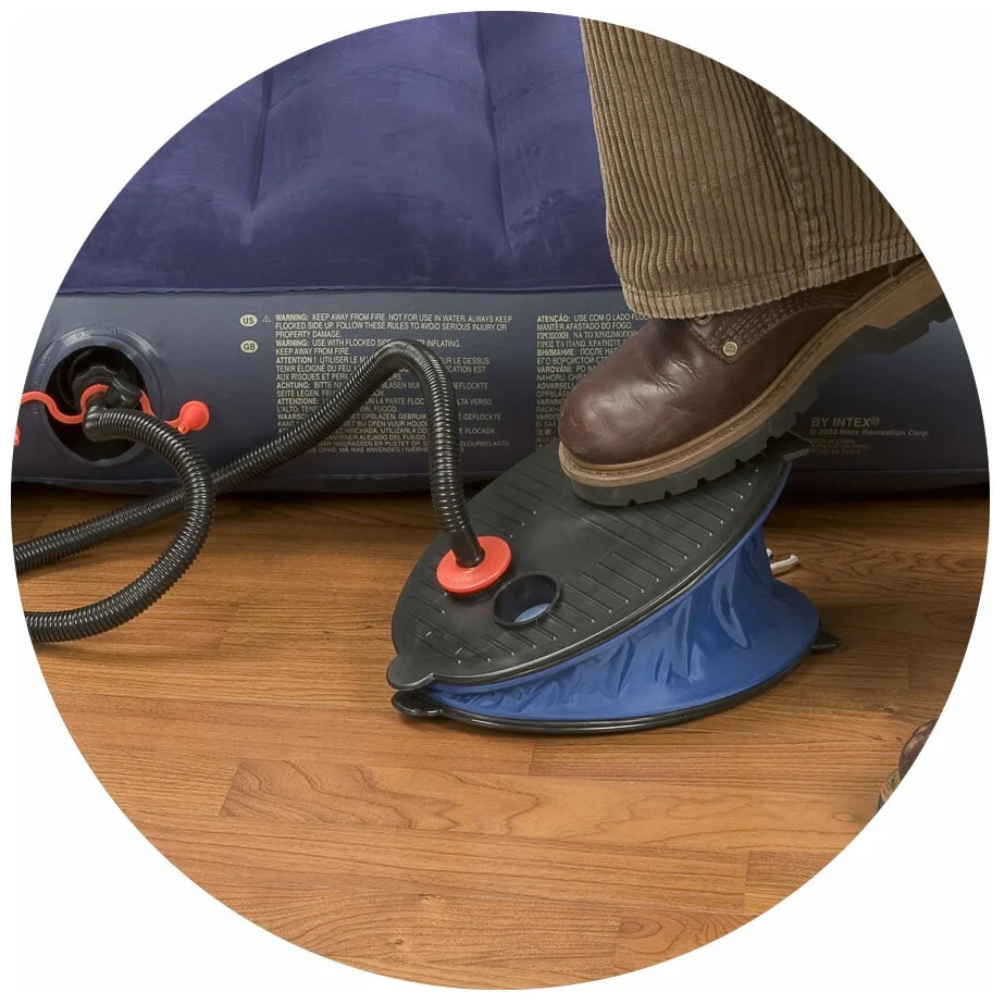 Простые механические насосы, которые работают от физической силы человека. По сравнению с ручными – накачивают плавательные средства гораздо быстрее
