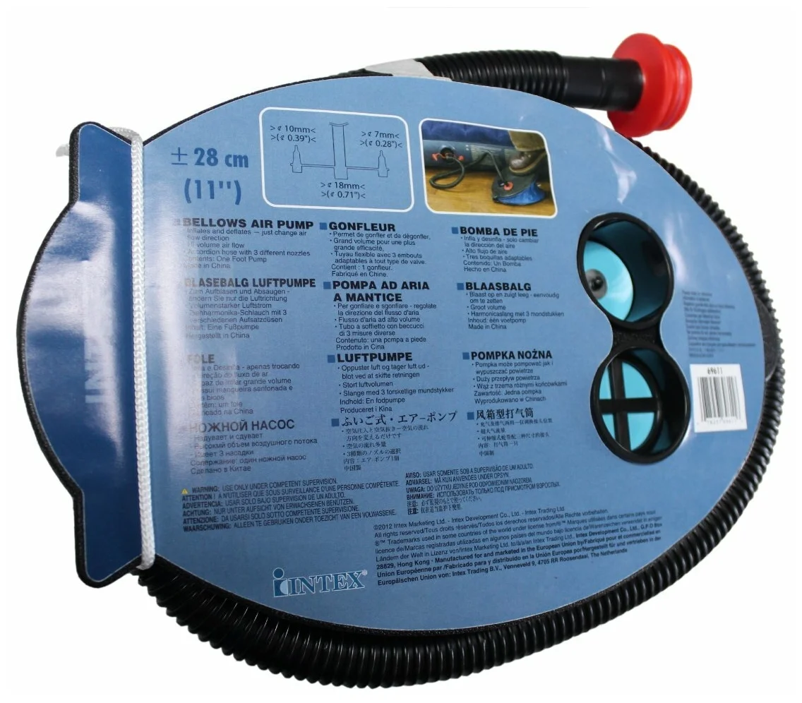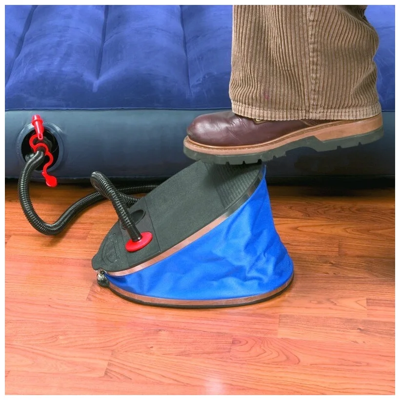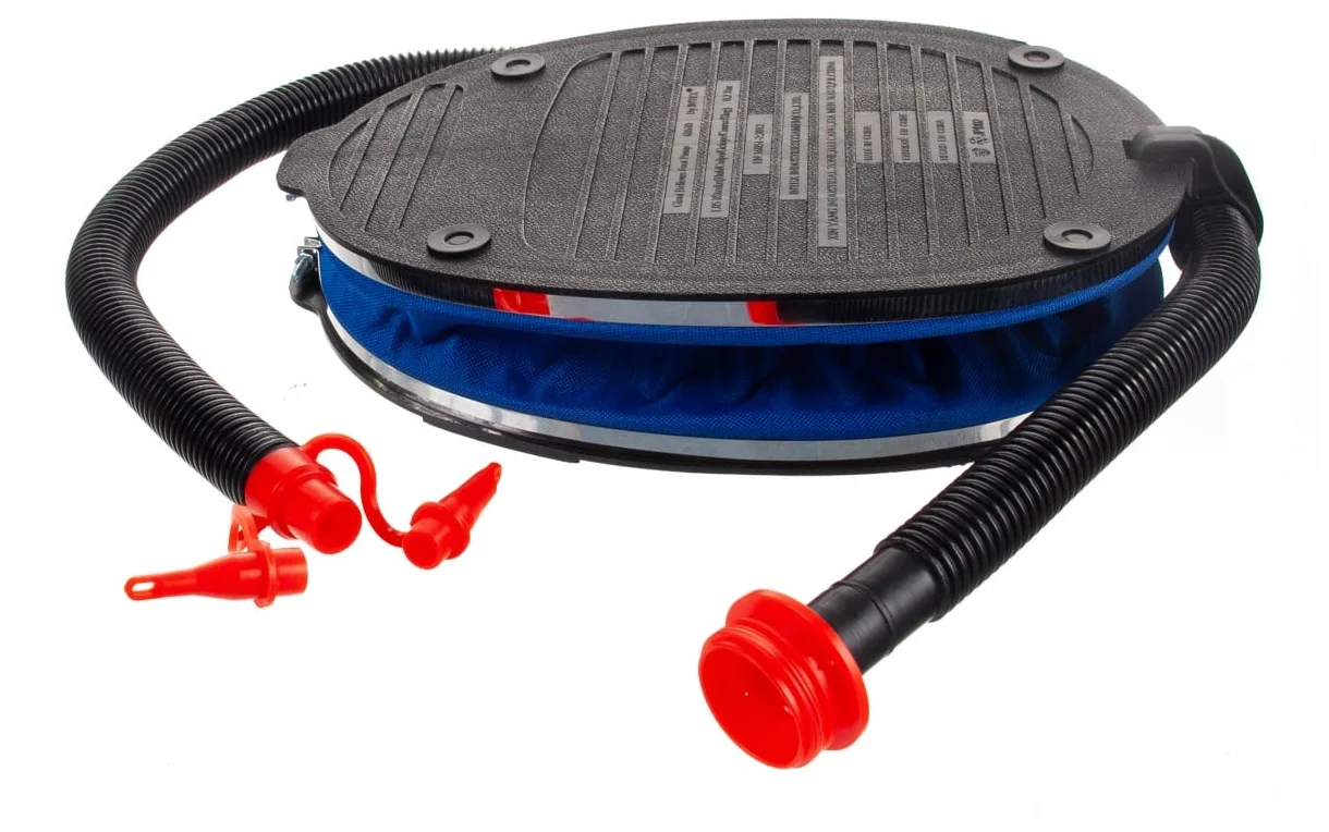 Компактный ножной насос, усиленная конструкция. Рабочая камера 5 литров. Основное назначение это небольшие надувные лодки. Производитель обещает давление в 300 мБар.