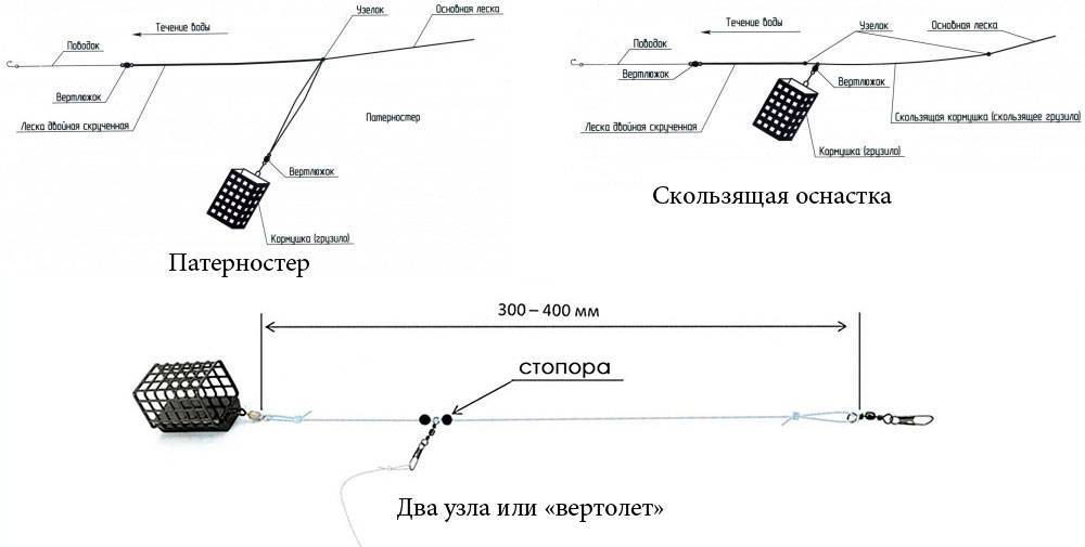 В качестве оснастки для фидерной ловли густеры используют Патерностер. Если же нужно забрасывать приманку далеко пользуются Вертолетом.