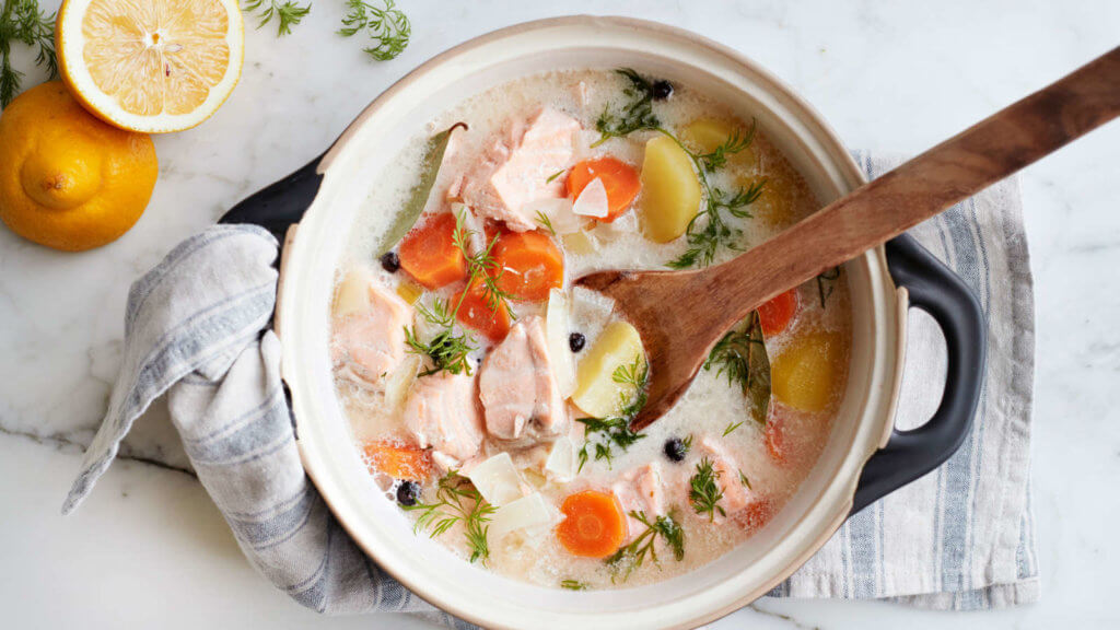 Тогда приготовьте для них традиционную финскую уху со сливками Lohikeitto. Готовится блюдо из лосося, форели или семги. Для кого-то такой рыбный суп может оказаться слишком дорогим, но в Финляндии его варят едва ли не каждый день. А все потому, что лосось в этой стране является самой доступной рыбой, даже дешевле обычной сельди. В нашей статье представим классический рецепт ухи по-фински со сливками. На выбор будут предложены и другие варианты приготовления этого блюда с добавлением разных ингредиентов.