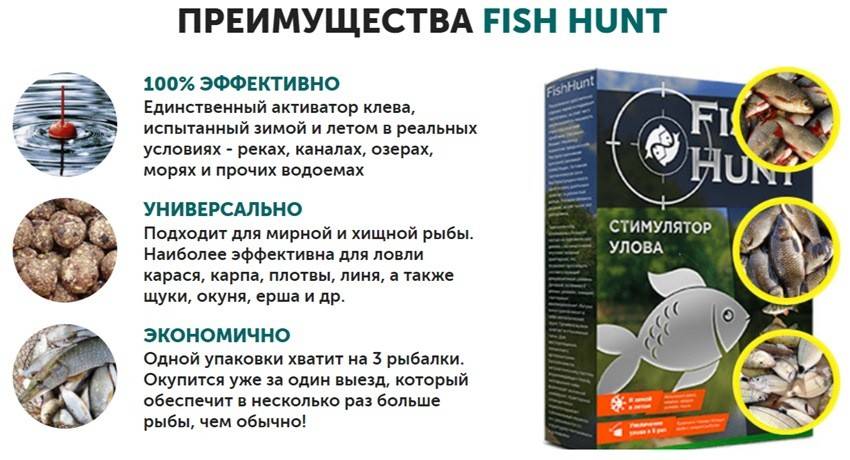 Многие приманки при низких температурах теряют свои свойства, обитатели водоемов не чувствует запаха еды и добиться хорошего улова в таком случае будет практически невозможно. Fish Hunt можно использовать в любое время года.
