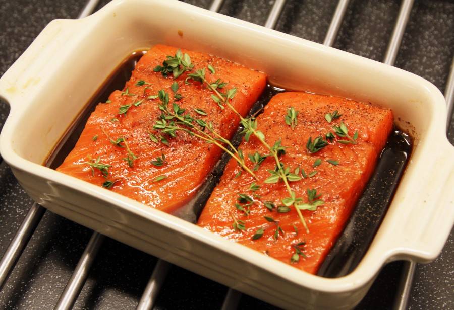 Пропитанная соевым соусом рыба приобретает непривычный, приятный привкус.