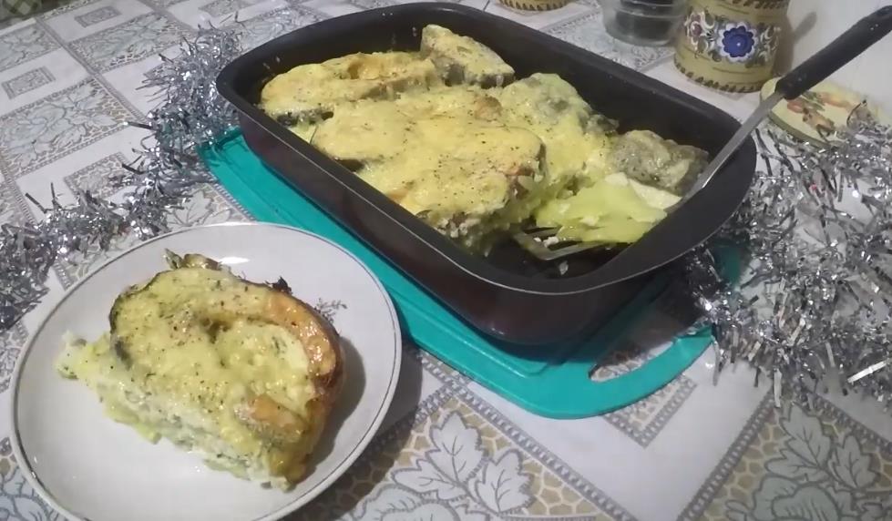 - Томаты располагаются рядом с рыбой и покрываются тёртым сыром.