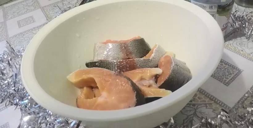 Для маринада использовать по 1 столовой ложке соли и сахара на 1 литр воды. Количество зависит от размера форели. Держать рыбу в маринаде следует 48 часов, если она порезана на кусочки, и до 3-х суток — при использовании целой тушки.