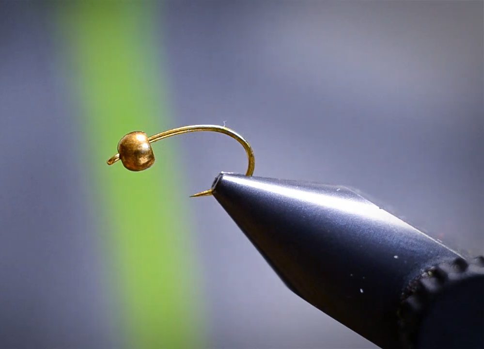 - В тисках зажимается крючок с предварительно надетой на него бусинкой.