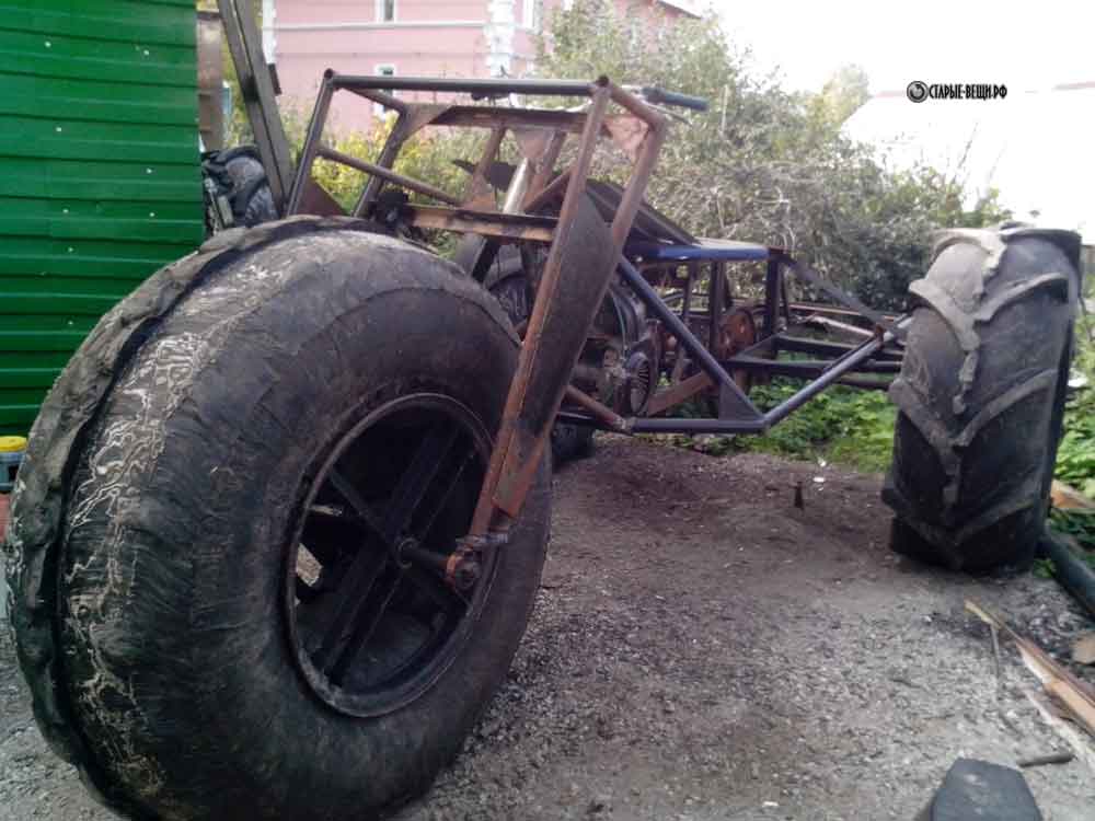 Этот вид вездехода создают на базе рамы картинга. В интернете имеется множество готовых чертежей и схем, которые можно взять за основу, доработать и подогнать характеристики под себя. В качестве кресла берут любое старое, которое могут найти. Желательно брать сидение из старой иномарки, тогда оно будет смотреться лучше, но встречаются умельцы, которые создают конструкции с применением мягких кресел, смотрятся они мягко говоря смешно.