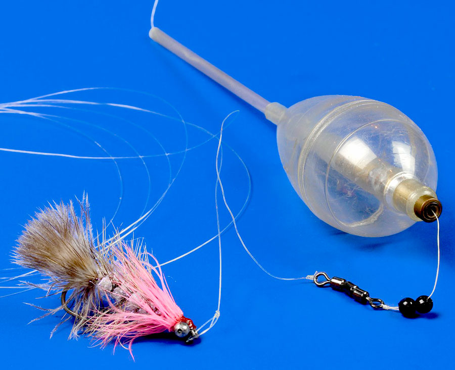 Такая конструкция рассчитана на размещение поводка после поплавка, но можно встретить и другие конструкции, у которых поплавок вяжется на конце снасти, а до него располагается поводковый материал с крючками.