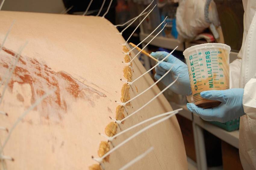 Осмотр вклейки днища лучше производить на лодке ПВХ, перевернутой вверх килем
