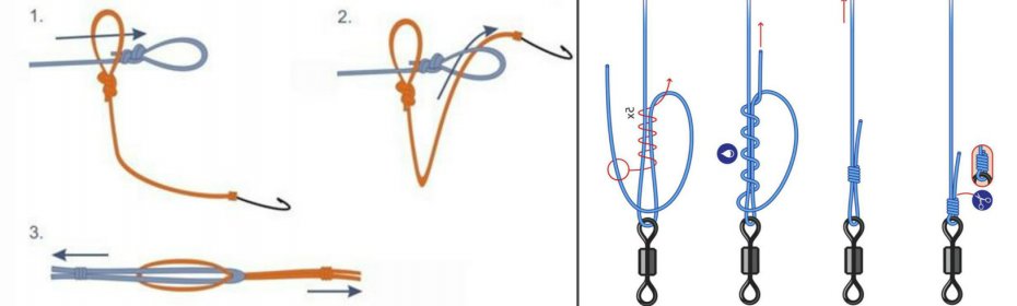 Эти узлы подходят для поплавочной ловли, а так же для различных «гирлянд», доночных монтажей с несколькими поводками, и прочих способов ловли, где нужно использовать дополнительные поводки.