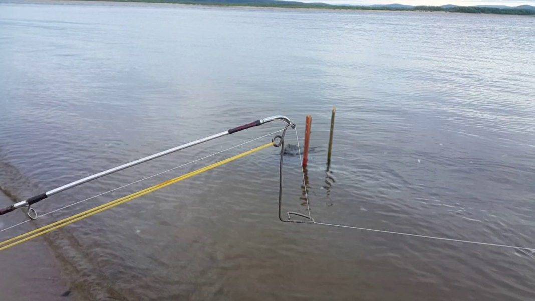 - На берегу рядом с удилищем. В основном это устройство самодельного типа со специальной деревянной подставкой. Располагается по ходу лески.