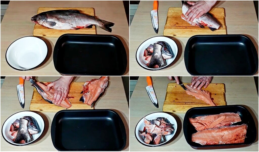 1. Почистите горбушу от чешуи (она у нее мелкая, если тушка уже распотрошена, то пропустите этот момент). Уберите все внутренности и голову, жабры, хвост с плавниками. Затем промойте хорошо в проточной воде.