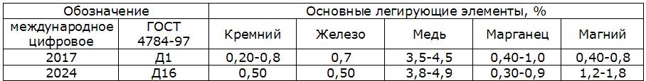 Таблица 1 – Алюминиевые сплавы Д1 и Д16