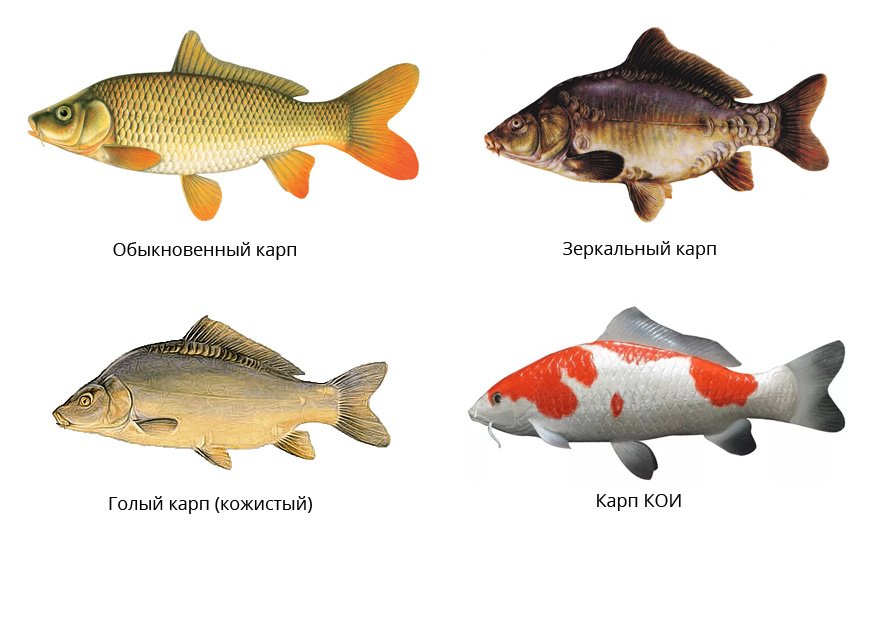 Существует множество подвидов карпа, в особенности декоративных, но все они входят в три основных вида.