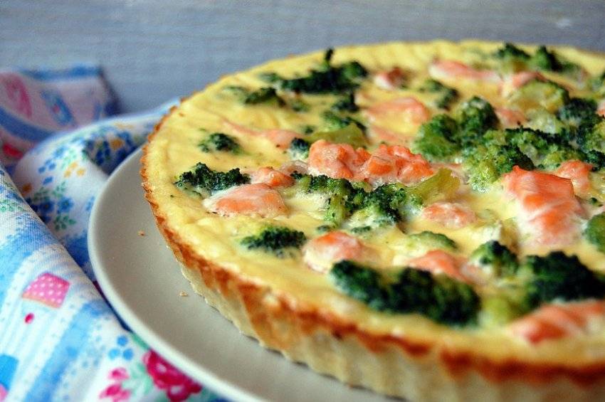 - Смешать заливку с рыбной смесью, выложить в смазанную маслом форму. Запекать в духовке около получаса при 200 градусах.