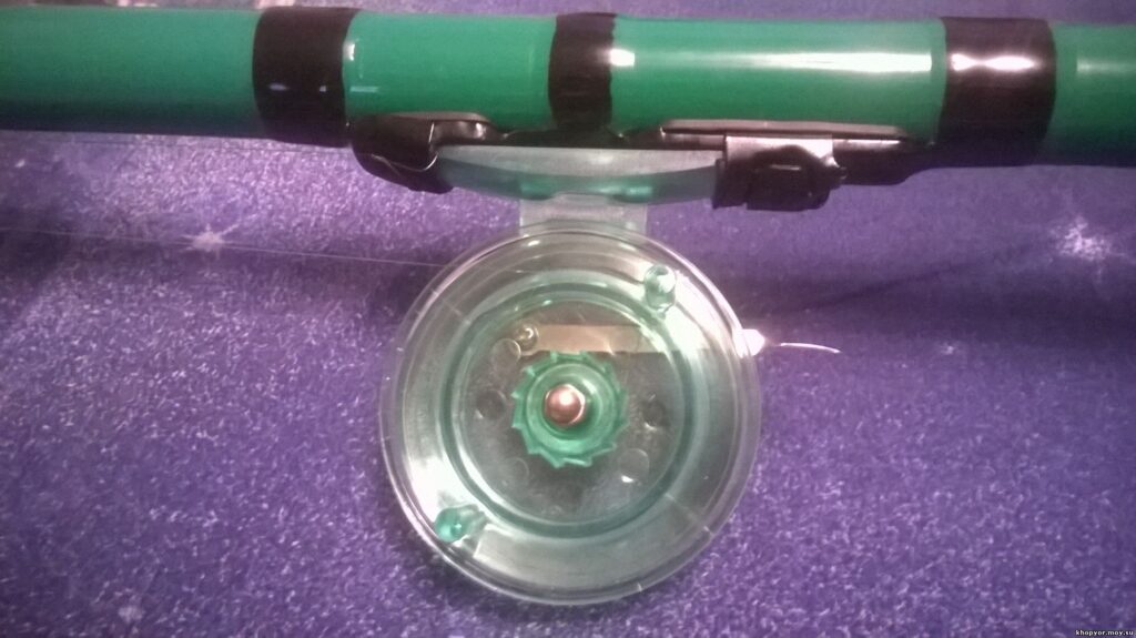 Основание выполнено из металла, а диаметр шпули составляет 3−7 см. Конечно же, с крупным трофеем такое изобретение не справится, весь отсутствие фрикциона не позволит понемногу отпускать леску и успешно доставать добычу, но для поимки небольших и средних по размеру экземпляров «белой» рыбы вполне сойдет.