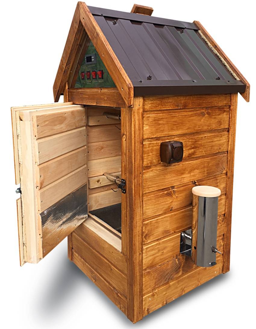 Учитывая, что в процессе готовки продукта в ход идут щепки, строение этой коптильни содержит свои компоненты: