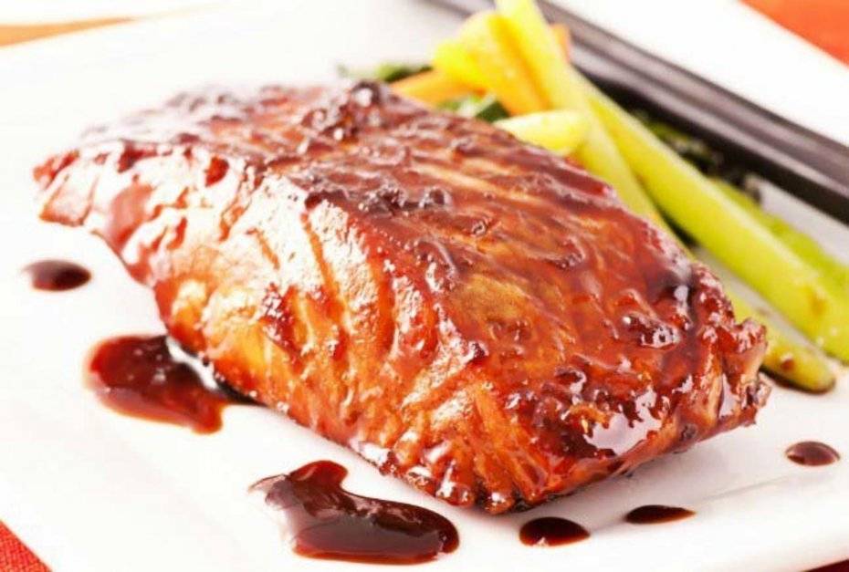 Ингредиенты смешиваются, стейки красной рыбы отправляются в маринад минимум на час. Если оставить рыбу мариноваться на ночь, она будет таять во рту. В случае аллергии на мед его можно заменить патокой или кленовым сиропом.