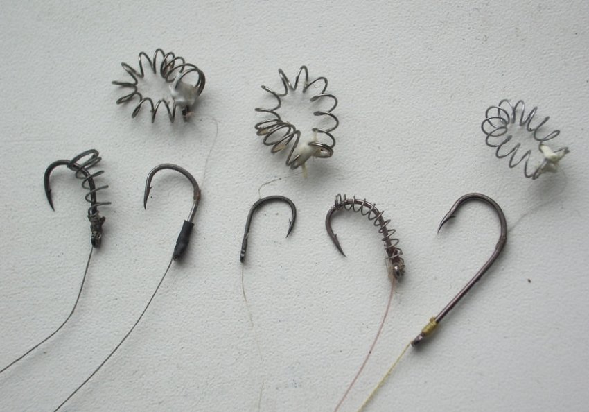 При ловле на манку или тесто удобно использовать крючки с пружинками. На них насадка держится намного дольше, чем на обычных крючках.