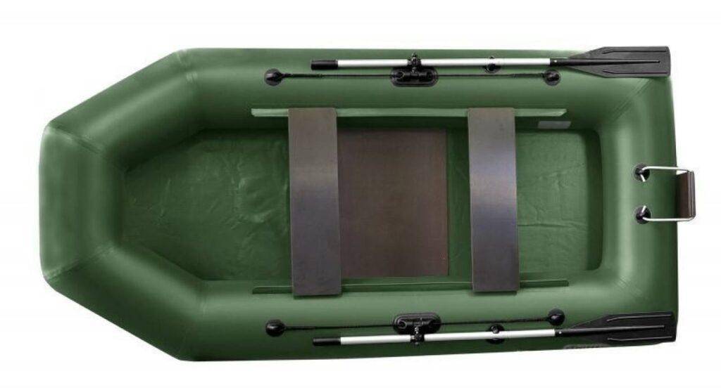 Воздушных отсеков в модели 2, сиденье достаточно жесткое. Дно ненадувного типа, с разборным пайолом из фанеры, бортики высокие. В комплектацию бортового оснащения входят ручки для переноски, весла, леерный трос, уключины, насос и ремкомплект. Лодка достаточно компактная и без проблем вмещается в багажник автомобиля, но тяжелая, так как весит 20 кг.