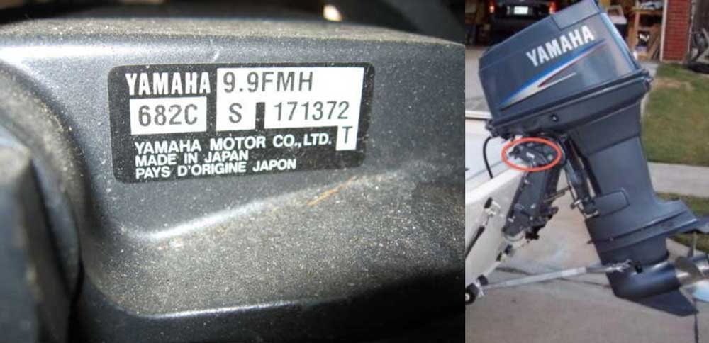 У всех подвесных лодочных моторов (ПЛМ) производителя Ямаха имеется заводская маркировка, с технической информацией об устройстве. Она размещается на специальной наклейке (в старых версиях на алюминиевой пластине), прикрепленной сбоку зажимного кронштейна (обычно слева или наверху). На эту наклейку производитель наносит следующие данные: