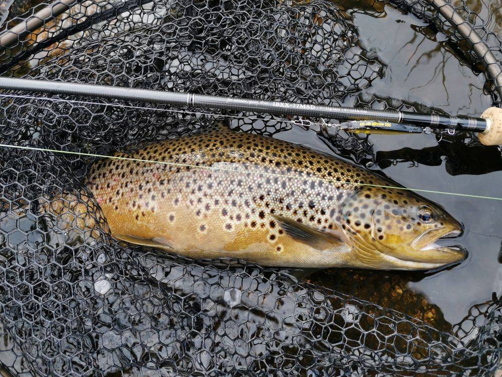 Важный момент при ловле на реке: если вам привычно ловить на вращающиеся блесны или воблеры-составники, т.е. приманки, подразумевающие равномерную проводку, лучше использовать классические лососевые удилища. Указанные приманки показывают себя лучше всего при проводке против течения, позволяя делать медленную подачу и долгие остановки в наиболее перспективных местах. Проводку этих приманок комфортнее выполнять спиннингами среднебыстрого строя, сглаживающими активную собственную «игру». Ну а все плюсы лососевых удилищ по-полной раскрываются после поклевки кумжи!