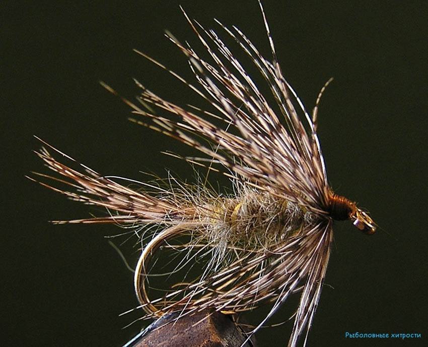- Deer Hair Caddis – сухая мушка из петушиного пера и оленьего волоса, отлично работает в летний период.