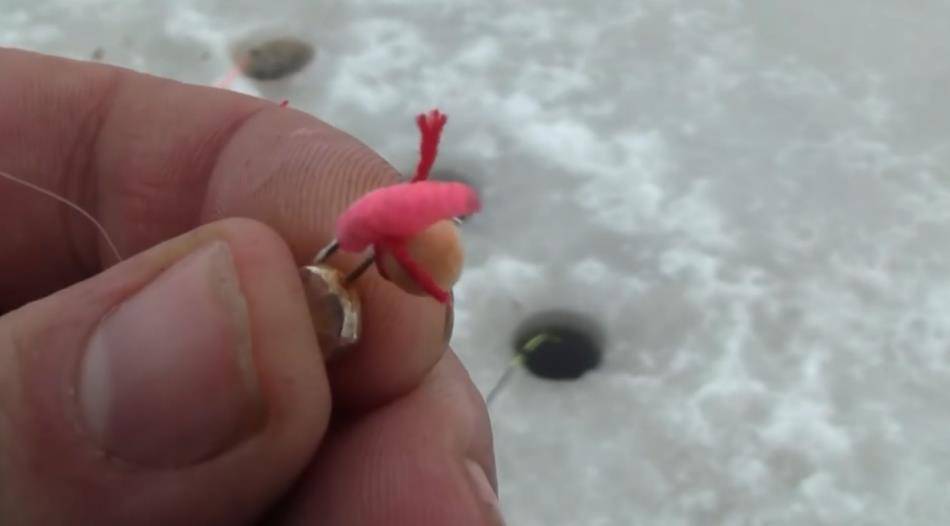- Бисер, кусочки резины, пенопласт, искусственный мотыль или опарыш, куки и пуфики.