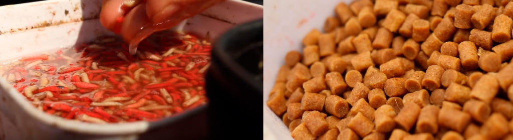 На водоеме, домашняя прикормка смешивается с землей в пропорциях один к одному, также в нее добавляются животные компоненты: мотыль, опарышь или рубленый червь.