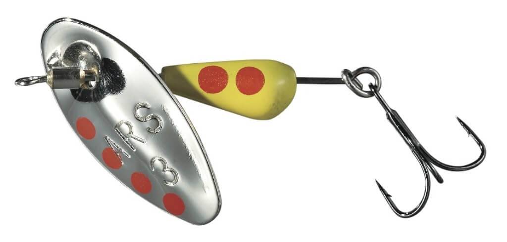 Лучше всего в работе показывают себя пятнистые, золотистые, серебристые приманки. Особенность вертушек: с их помощью можно оперативно отыскать активного хищника. Это актуально, особенно для ловли форели на незнакомых акваториях.