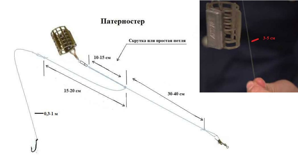 - К данной петле крепиться поводок методом петля в петлю. Длина поводка зависит от интенсивности клева, если клев слабый и осторожный, тогда лучше ставить поводки длиною 1 м, при активном клеве их длину можно уменьшить до 30 см.