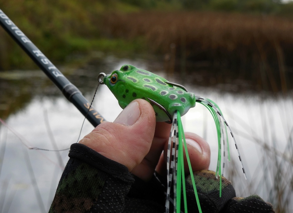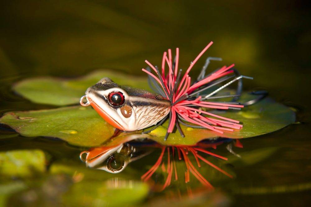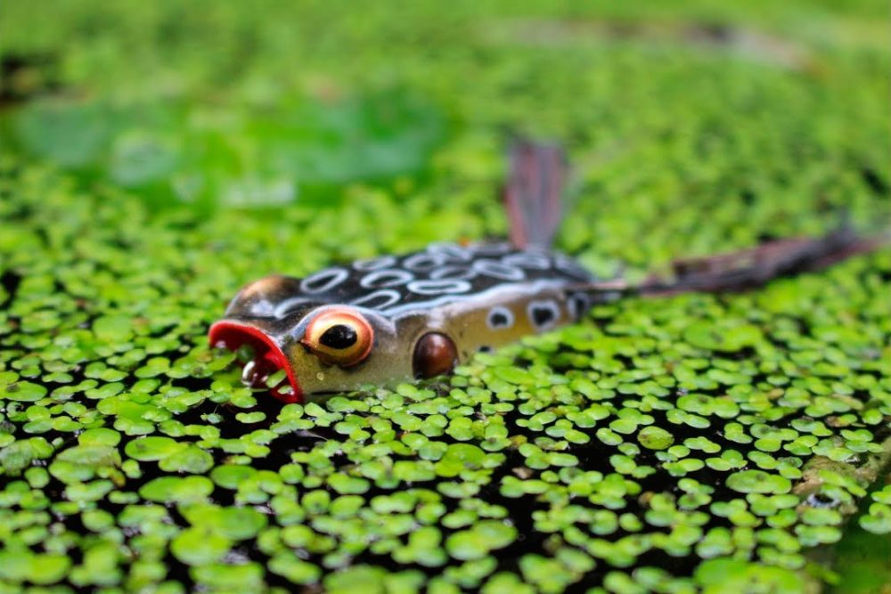 В таких труднодоступных местах искусственная лягушка является лучшей приманкой, все препятствия – будь то кувшинка или трава, она просто перепрыгивает. Места для ловли нужно выбирать не там, где обитают настоящие лягушки, а недалеко от них.