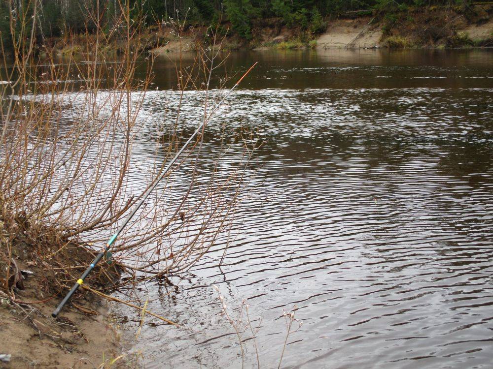 Если вода прозрачная – и рыба вас явно пугается, то оставьте свое удилище на подставке или прибрежных кустах – и отойдите на несколько метров от него (фото 8). Часто хватает нескольких минут, чтобы хищник успокоился и совершил бросок на вашего малька. Да, при подсечке и вываживании вы, вероятно, распугаете остальную стаю, но если место стоящее и у вас есть запас времени, то вполне можно рассчитывать и на следующие поклевки полосатого, пользуясь этой тактикой.