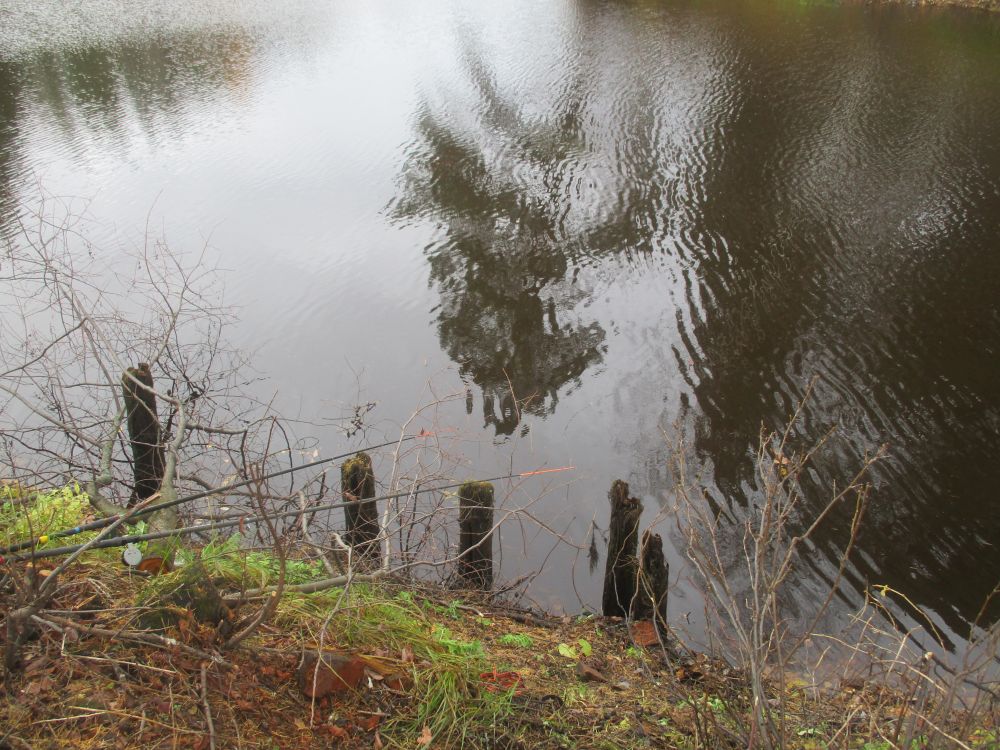 - Шест острым концов воткните в берег под таким углом, чтобы расстояние от жерлицы до воды составляло не более 50 см.