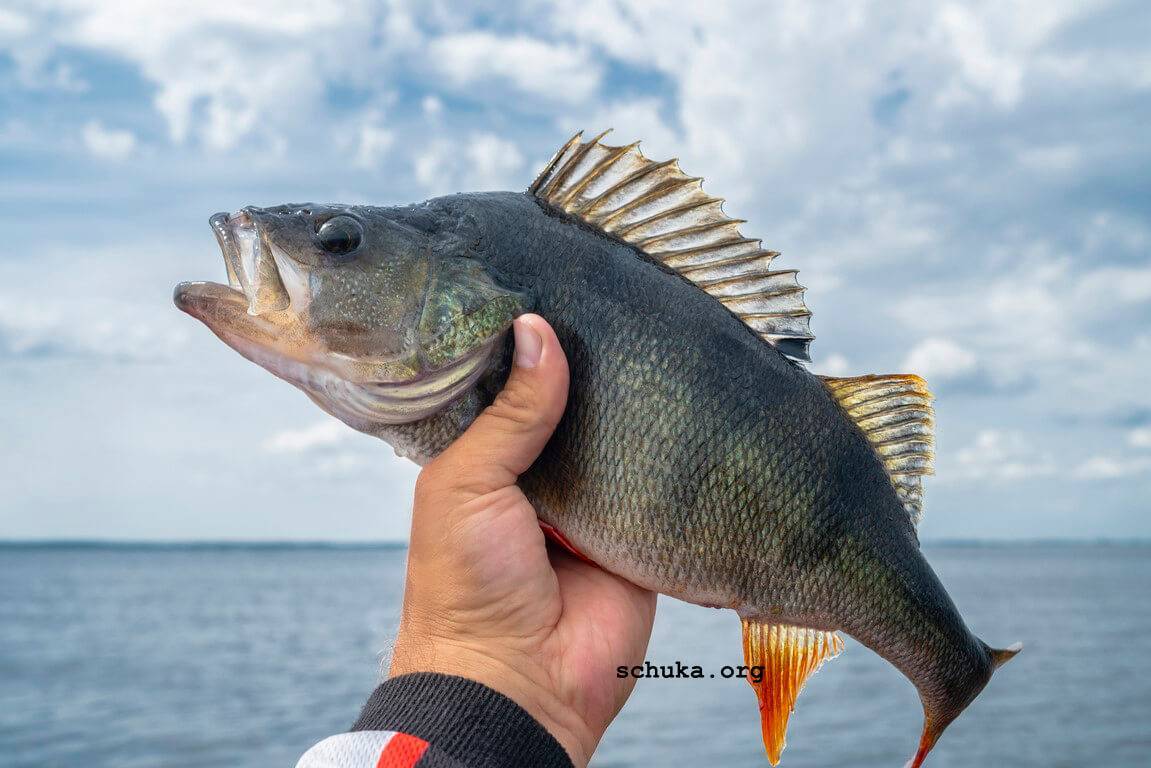 Берет она приманку осторожно, как бы «губами».Когда клюет окунь в августе