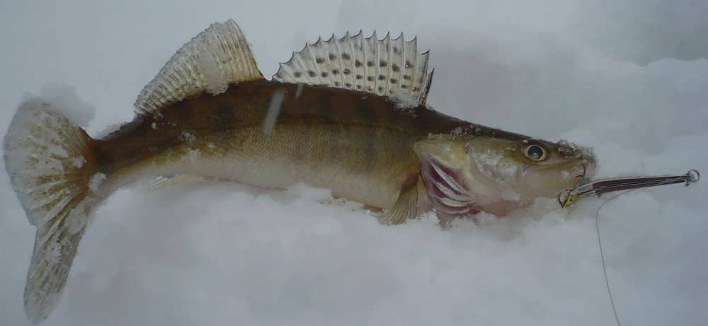 Важно! При ловле трофейного судака лучше использовать ледобур с диаметром шнека 150 и даже 180 мм. Под рукой у рыбака всегда должен быть багорик для беспроблемного извлечения крупной рыбы из лунки.