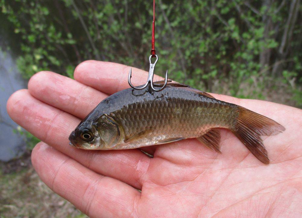 Если мы ловим щуку на поплавочную удочку, то используем в качестве живца карасика, плотву, пескаря или окуня. Как его цеплять – это вопрос. Самый обычный вариант – заводить двойник или тройник под спинной плавник (фото 10). Живец чувствует себя хорошо продолжительное время, его можно перезакидывать, он достаточно активен в своем перемещении. Но есть нюанс.