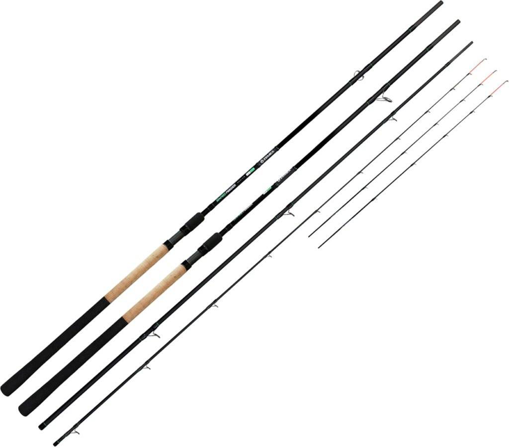 Мощная модель быстрого строя для предназначена для ловли на среднем, быстром течении с использованием тяжелой оснастки. Бланк изготовлен из композита. Величина теста предусматривает использование кормушек весом 40 – 90 г. Конструкция из 3 секций раскрывается на длину 3,6 м. При сборке она уменьшается до 1,27 м, что повышает удобство транспортировки удилища. Оснащено легкими пропускными кольцами SIC, комбинированной рукояткой, держателем катушки винтового типа.