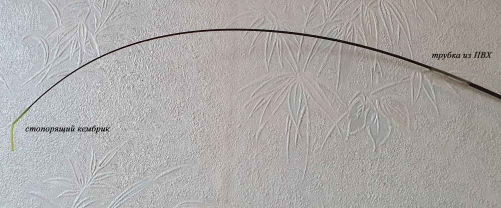 Более тонкий кембрик – это, как правило, изоляция от провода нужного сечения. Именно его надо тщательно примерить к тонкому концу хлыста удилища – кембрик должен плотно налезать на него. Делать это необходимо на трезвую голову, а то дрожащими руками запросто можно сломать хрупкий кончик. Дальше – всё просто.