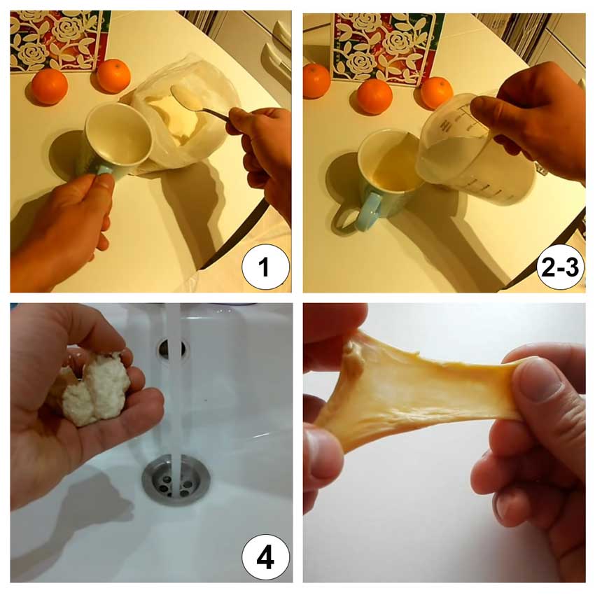 - Теплую смесь разминают пальцами рук. Чтобы масса не липла к рукам, их предварительно смазывают подсолнечным маслом.