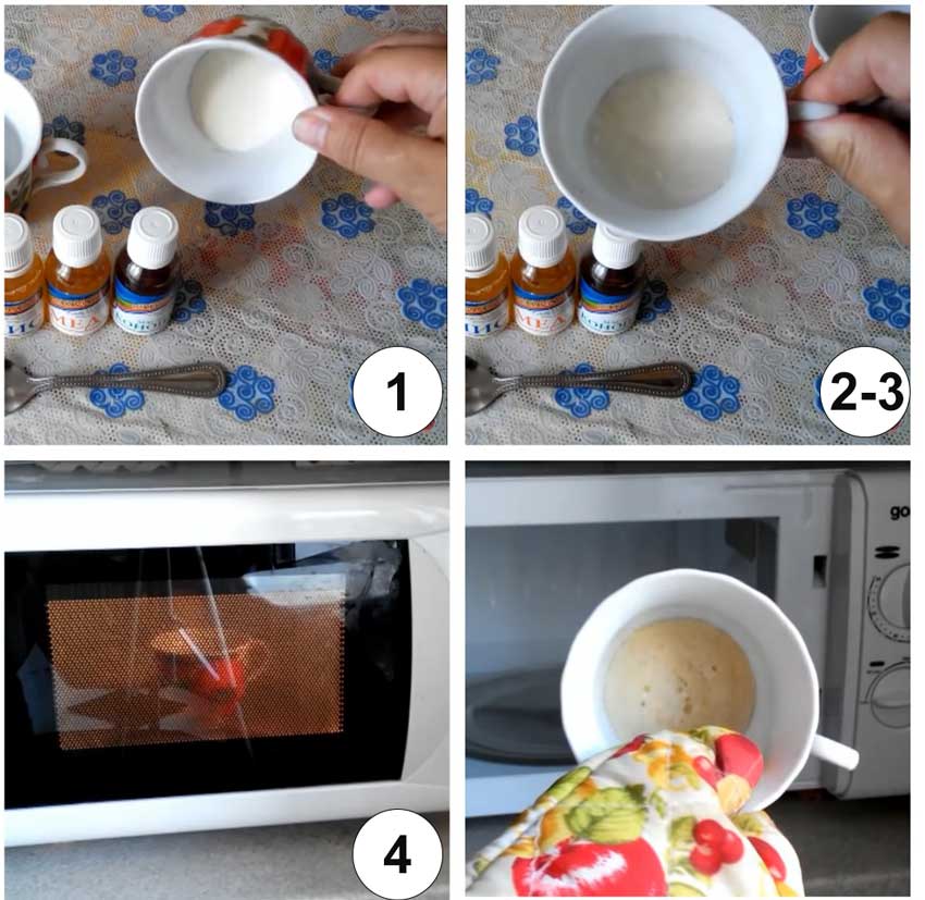 - Полстакана манки засыпают в посудину небольшой емкости.