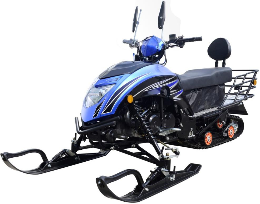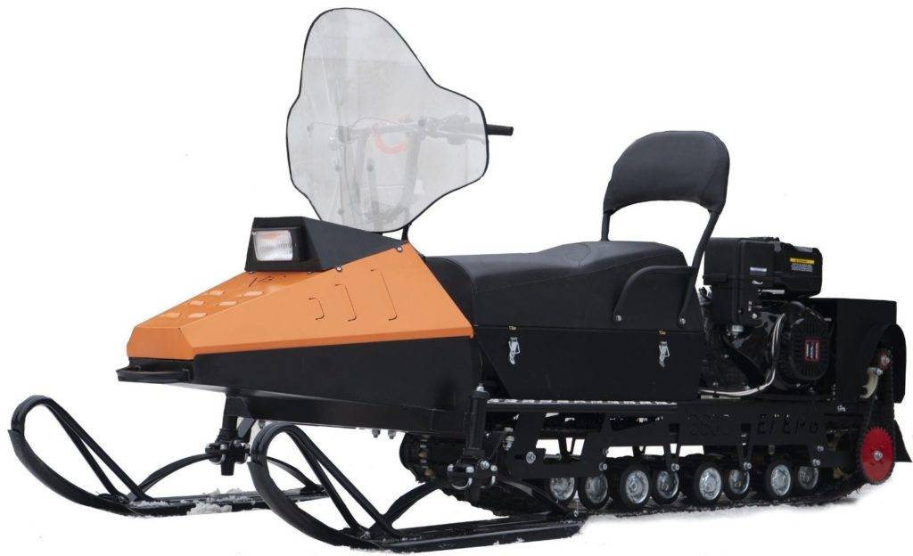 Надежное устройство с бензиновым движком и электрическим стартером. Производитель оснастил свое детище встроенным реверсом и тормозом, что делает технику безопасной во время активного зимнего отдыха, семейных развлечений и туризма. Относится к категории новинок. Рама прочная, изготовлена из цельного стального листа. Сварочные соединения отсутствуют, что гарантирует ее прочность и надежность. Гусеница удлиненная, хорошо контактирует с поверхностью. Проходимость отменная. Передняя часть оснащена лыжами от снегохода «Буран». Узлы максимально унифицированы. Проблем с приобретением запасных частей не возникает. Цена высоковата, но вполне оправдана.
