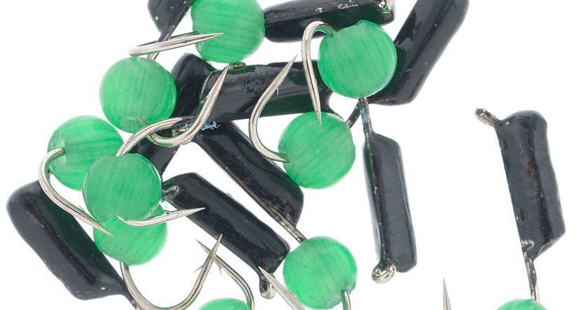 Главная особенность снасти — специальная бусинка, которая имеет свойство свободно передвигаться вокруг крючка. Крепится бусина при помощи отверстия в её центре либо при помощи петелек. Маленькие бусинки могут иметь различную форму и цвета.
